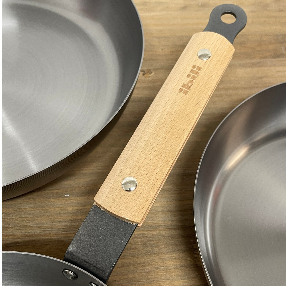 - Sartén KarbonSteel fabricada en acero al carbono (99% hierro, 1% carbono)